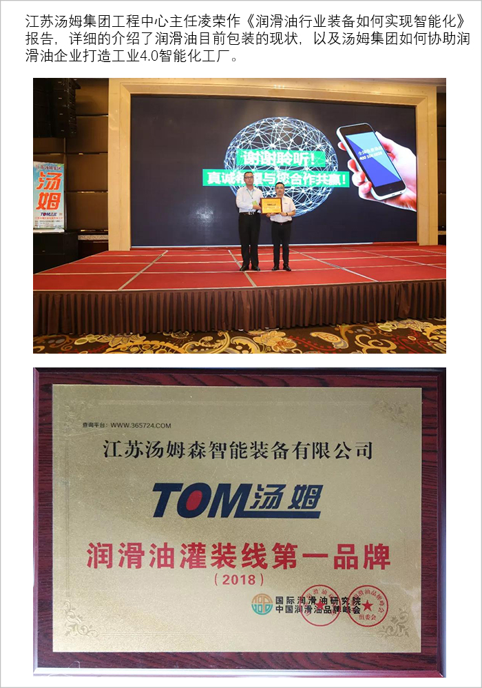 江蘇湯姆集團獨家冠名的2018潤滑油品牌峰會圓滿結束!