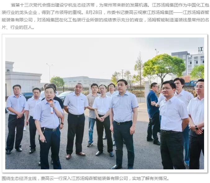 中共常州市委書記費高云視察江蘇湯姆集團 對湯姆在化工包裝行業所做的成績表示充分的肯定