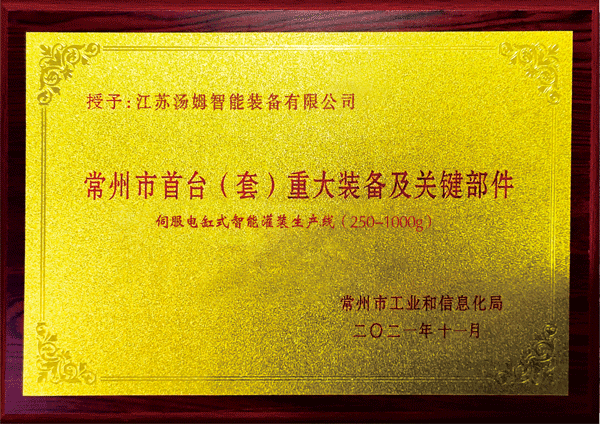常州市首臺(套)重大裝備企業(yè)