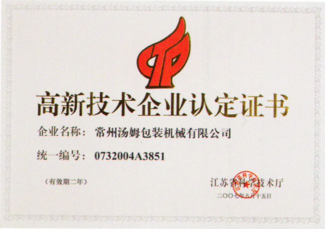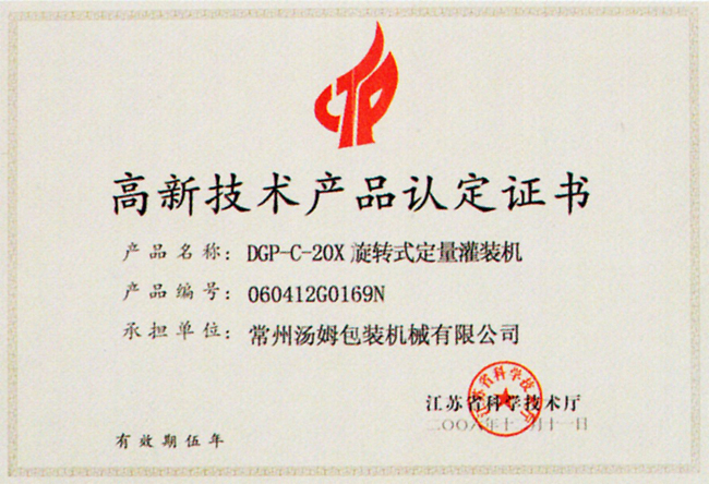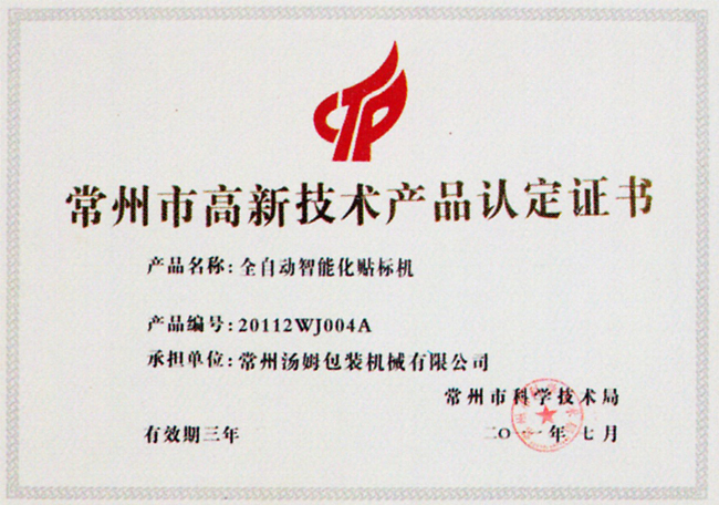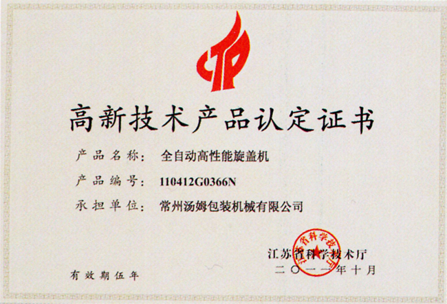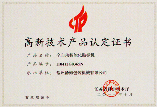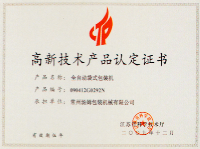 高新技術(shù)產(chǎn)品認(rèn)定證書(shū)