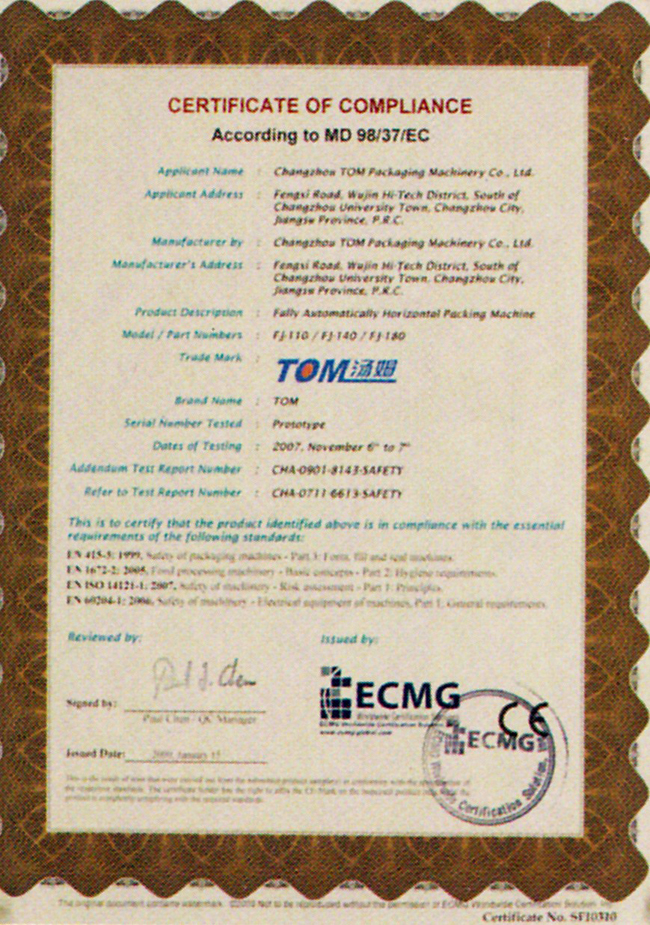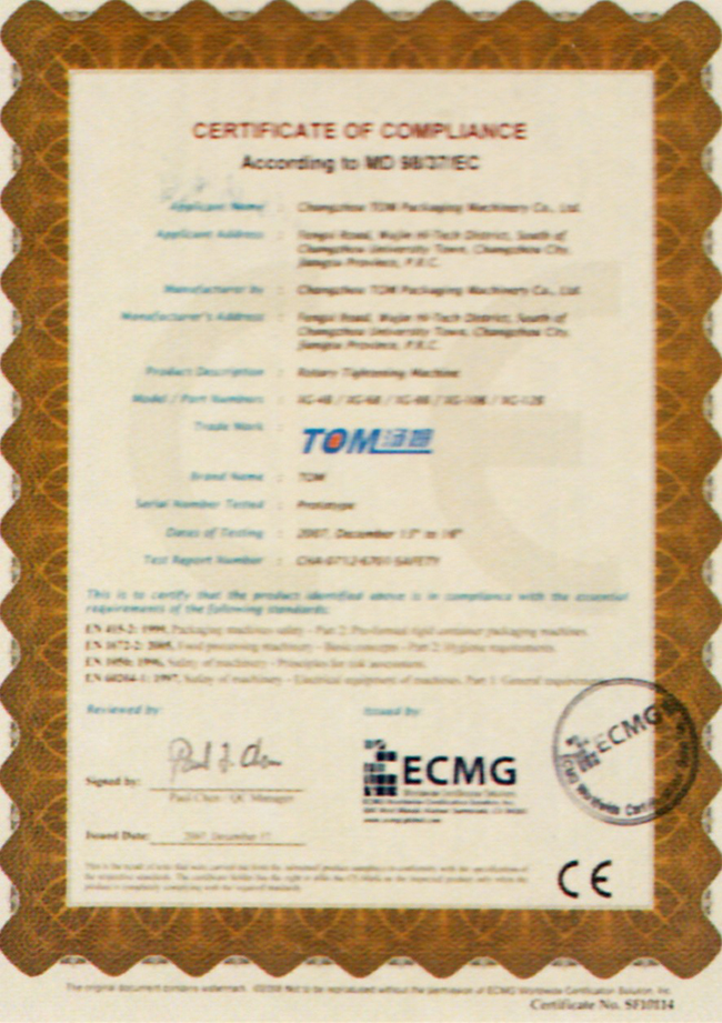 Certificate of compliance