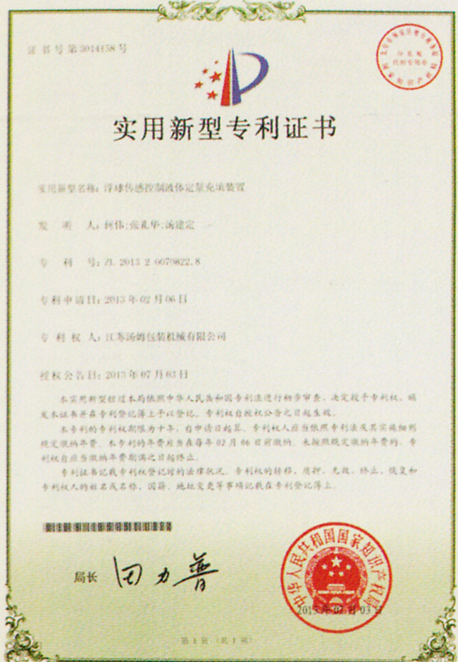實(shí)用新型專(zhuān)利證書(shū)